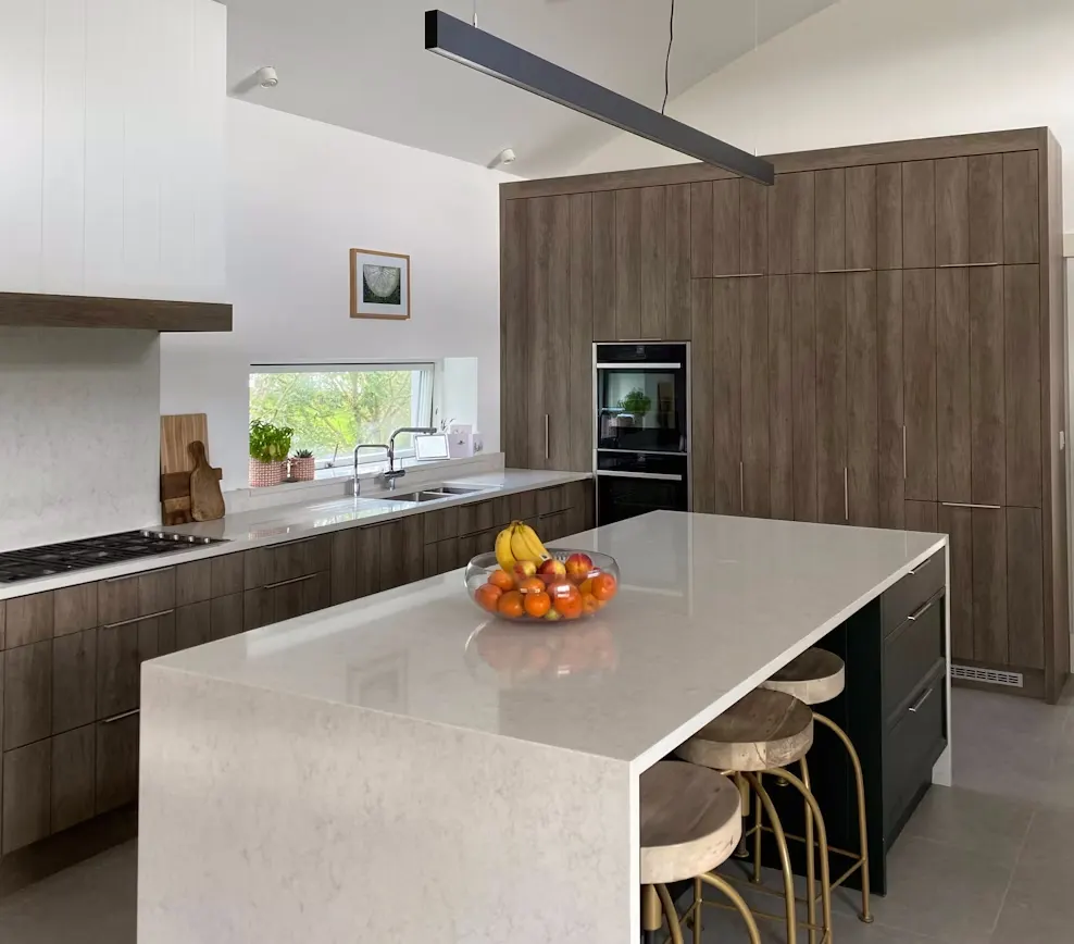 The two tones of white and grey, complemented by a dark grey vein, give this colour a bold, marbled effect.