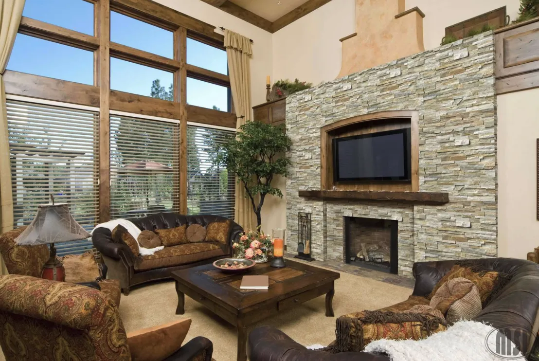 Golden Honey Stacked Stone ledger panels feature the organic nature of real stone in warm whites, golden and grays.