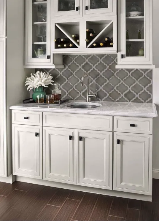 Dove Gray Arabesque Tile Highland Park collection, feature a backsplash tile in a mid-tone gray polished finish, in an elegant arabesque pattern. It’s suitable for a wide array of interior design projects including countertops, accent walls, kitchen backsplashes, shower surrounds, and more. To make the shape stand out, consider using a contrasting grout.Good for Shower Walls, Accent Walls and Backsplashes.