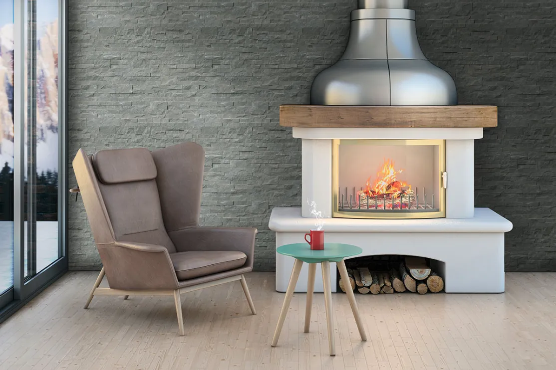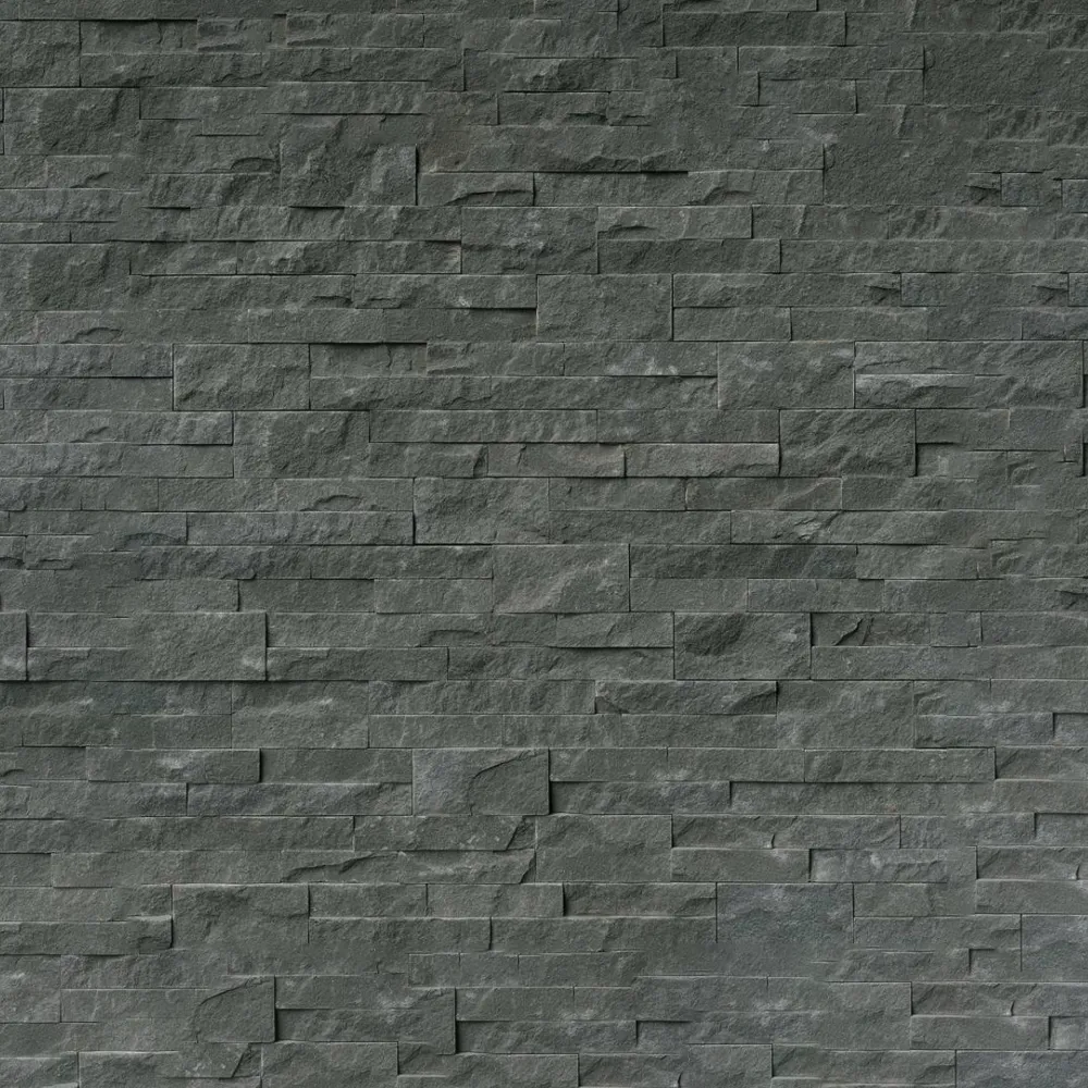 The Mountain Bluestone Stacked Stone brings coziness and drama together with a dark blue-gray stacked stone